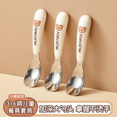 宝宝勺子训练婴儿自主进食专用吃饭316L不锈钢叉子辅食勺儿童餐具