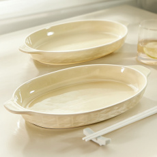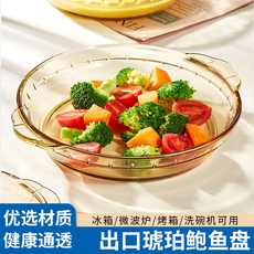 微波炉烤箱蒸箱加热专用耐高温玻璃盘子家用菜盘现代轻奢双耳器皿