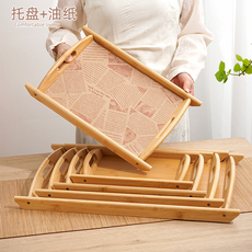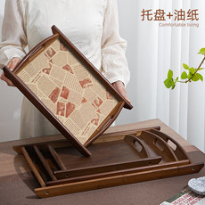 托盘竹木质长方形餐盘菜盘酒店烧烤油纸垫纸家用商用大小双耳盘子