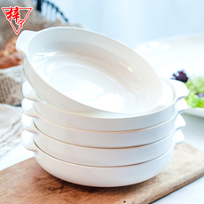双耳盘子菜盘家用白色深盘空气炸锅盘陶瓷烤箱蒸箱专用蒸鸡蛋羹盘
