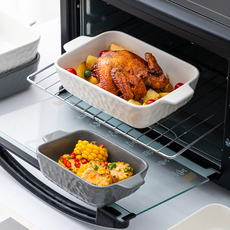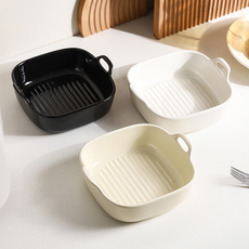 川岛屋空气炸锅专用碗陶瓷烤碗烤箱用方形双耳烤盘沙拉烘焙焗饭碗