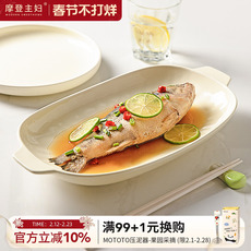 摩登主妇双耳鱼盘家用2026新款蒸鱼盘子高级感餐具椭圆形鱼碟菜盘