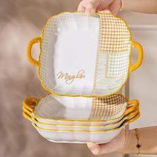 耐高温陶瓷碗精致漂亮的米饭碗盘子菜盘家用时尚饭盘面碗双耳菜盘