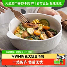佩尔森陶瓷双耳汤碗家用泡面碗烤碗日式简约防烫大容量酸菜鱼汤盘