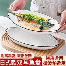 双耳鱼盘家用蒸鱼盘子2026新款高级感陶瓷装鱼碟子大号釉下彩鱼碗