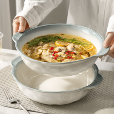 陶瓷白色双耳汤碗高颜值家用新款汤盆大号泡面碗酸菜鱼大盆碗盘子