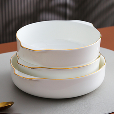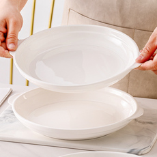 纯白骨瓷盘子陶瓷餐具家用菜盘北欧创意圆形深盘汤盘防烫双耳窝盘