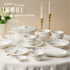 jiwoo高颜值釉下彩餐具创意碗碟盘子组合陶瓷面碗汤碗双耳碗家用