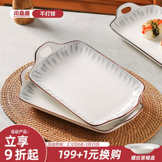 2只双耳大号加深鱼盘耐高温陶瓷盘子家用菜盘 网红新款菜碟子蒸盘