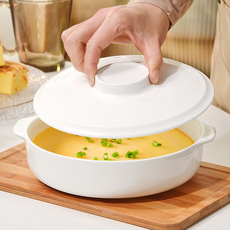 蒸蛋羹专用碗蒸蛋碗带盖水蒸蛋碗陶瓷蒸菜碗双耳汤碗隔水炖盘子