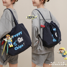 十七家可爱小狗束口抽绳两用双肩包2024新款潮轻便学院风单肩背包