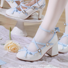 西柚{少女茶会}原创lolita鞋粗细高跟优雅特大码45白蓝双色lo鞋