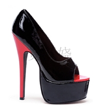 美国Pleaser15.2cm黑红双色组合高跟凉鞋防水台鱼嘴T字带钢管舞鞋