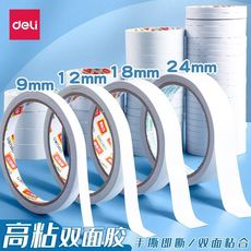 得力儿童手工双面胶高粘度不留痕强力固定墙面学生用胶带白色两面胶透明无痕办公用品diy手撕超薄批发文具