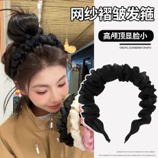 褶皱网纱高颅顶发箍女春夏甜美防滑带齿洗脸头箍气质百搭发卡发饰