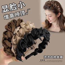 复古高颅顶发箍女气质简约缎面波浪头箍日常外戴洗脸发卡发窟头饰