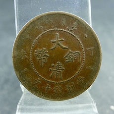 大清铜币丁未四柱当制钱十文铜板铜元保真保老古董古玩杂项收藏