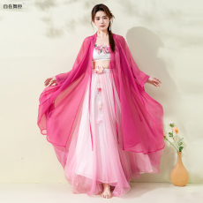 古风爵士古典舞演出服套装飘逸仙气玫红纱衣大摆裙练功服表演服