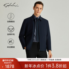 [可拆卸鹅绒内胆]SATCHI沙驰男装男士羽绒服冬季商务羊毛行政夹克