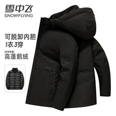 雪中飞羽绒服男款冬季外套2025新款连帽内胆可拆卸商务休闲羽绒衣