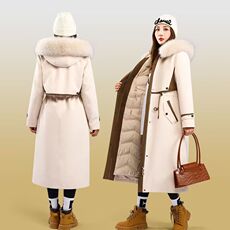 啄木鸟高档中长款羽绒服女2025冬季新款可拆卸内胆派克服加厚外套
