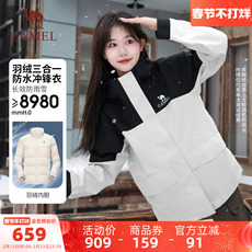 骆驼羽绒内胆冲锋衣女冬季户外三合一可拆卸保暖加厚羽绒服外套男