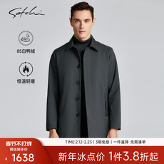 [可拆卸鸭绒内胆]SATCHI沙驰男装男士羽绒风衣冬季商务行政外套厚