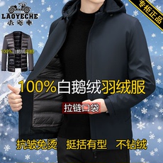 老爷车可拆卸内胆鹅绒羽绒服男休闲商务中老年爸爸装保暖防风外套