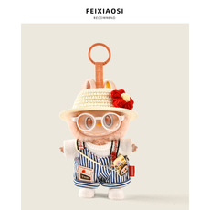 原创labubu娃衣16cm小熊格子牛仔背带裤拉布布可爱棉衣可替换情侣