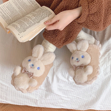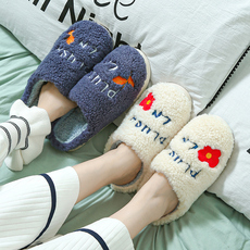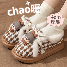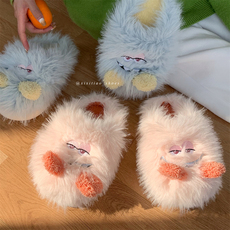 细细条 棉拖鞋女秋冬韩版ins软萌少女心可爱卡通家用防滑毛毛拖鞋