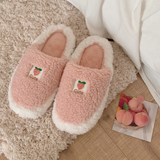 可爱红苹果棉拖鞋女款冬季宿舍保暖毛毛鞋居家地板防滑月子鞋假日