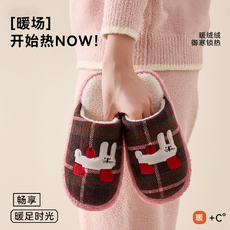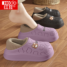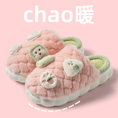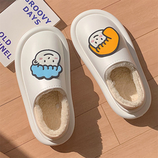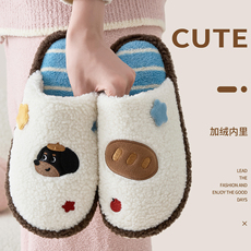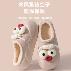 细细条 情侣棉拖鞋冬可爱卡通居家可外穿防水暖绒保暖壳子拖男女