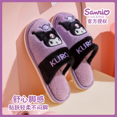 三丽鸥棉拖鞋女士冬季室内家居地板保暖库洛米加绒毛拖鞋冬天可爱