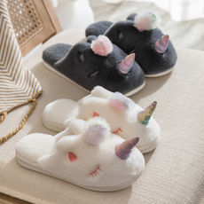 搞怪暖绒独角兽包跟棉拖鞋女冬可爱毛茸茸家用室内情侣防滑月子鞋