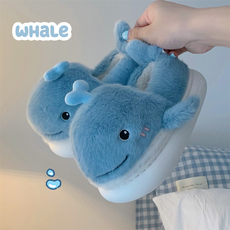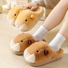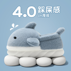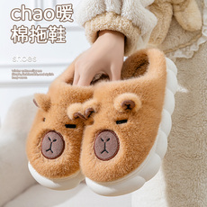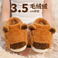 细细条男女冬软萌可爱河马毛绒月子鞋家居用防滑保暖情侣棉拖鞋