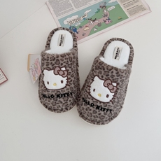 KT猫亲子棉拖鞋女卡通可爱凯蒂猫中大童儿童拖鞋冬季毛绒保暖防滑