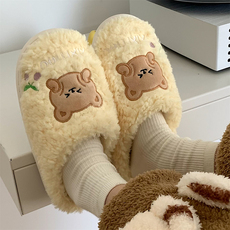细细条 少女心可爱小熊棉拖鞋女冬学生室内防滑厚底保暖毛绒棉鞋