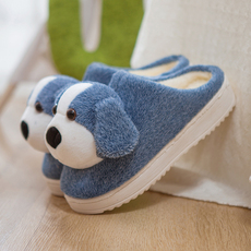 细细条 可爱全包跟毛毛鞋女冬季保暖室内防滑卡通狗狗居家棉拖鞋