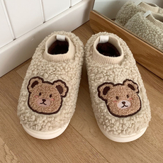 细细条 可爱卡通小熊全包跟棉拖鞋冬天家居防滑卧室保暖月子鞋女