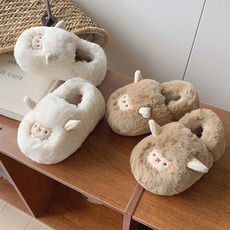 细细条网红可爱小羊软底全包跟毛毛鞋女冬季时尚居家亲子棉拖鞋