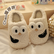 细细条 情侣小怪兽棉拖鞋冬季防滑软厚底可爱保暖毛绒居家鞋男女