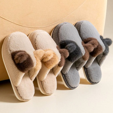 双杠毛绒可爱卡通保暖居家室内秋冬棉拖鞋女网红一字防滑毛毛拖鞋