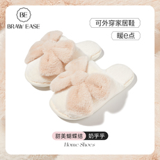 毛毛拖鞋女冬季棉拖毛绒可爱蝴蝶结高级感居家室内家用可外穿秋冬