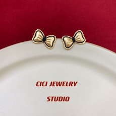 「甜心派对」甜美复古波点蝴蝶结耳钉925银针小众设计感可爱耳环