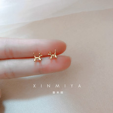 CICI韩国新款手工立体长颈鹿精工梦幻小众可爱百搭纯银耳钉包邮女