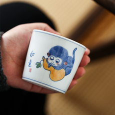 勾画景德镇手绘卡通可爱小猴子陶瓷青花水杯成人儿童品茗杯主人杯