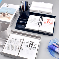 得力台历架2026年台历芯农历一天一页创意简约小清新办公商务记事日历桌面摆件ins风桌面收纳带笔筒整理盒