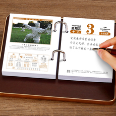 2026年简约折叠皮座台历一天一页记事国学养生皮面日历架套装定制