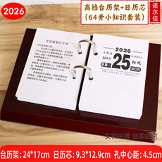 2026年日历芯木质台历架商务办公摆件365天小知识记事64开台历芯