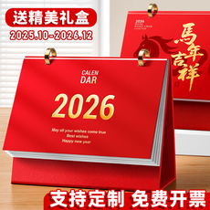2026年新款台历定制特大号中国红红色企业礼品订制三角台历制作日历喜庆商务台历桌面创意摆件马年月历定做